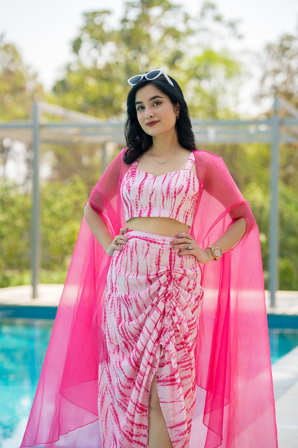 Shibori dhoti co-ord set with Organza throw